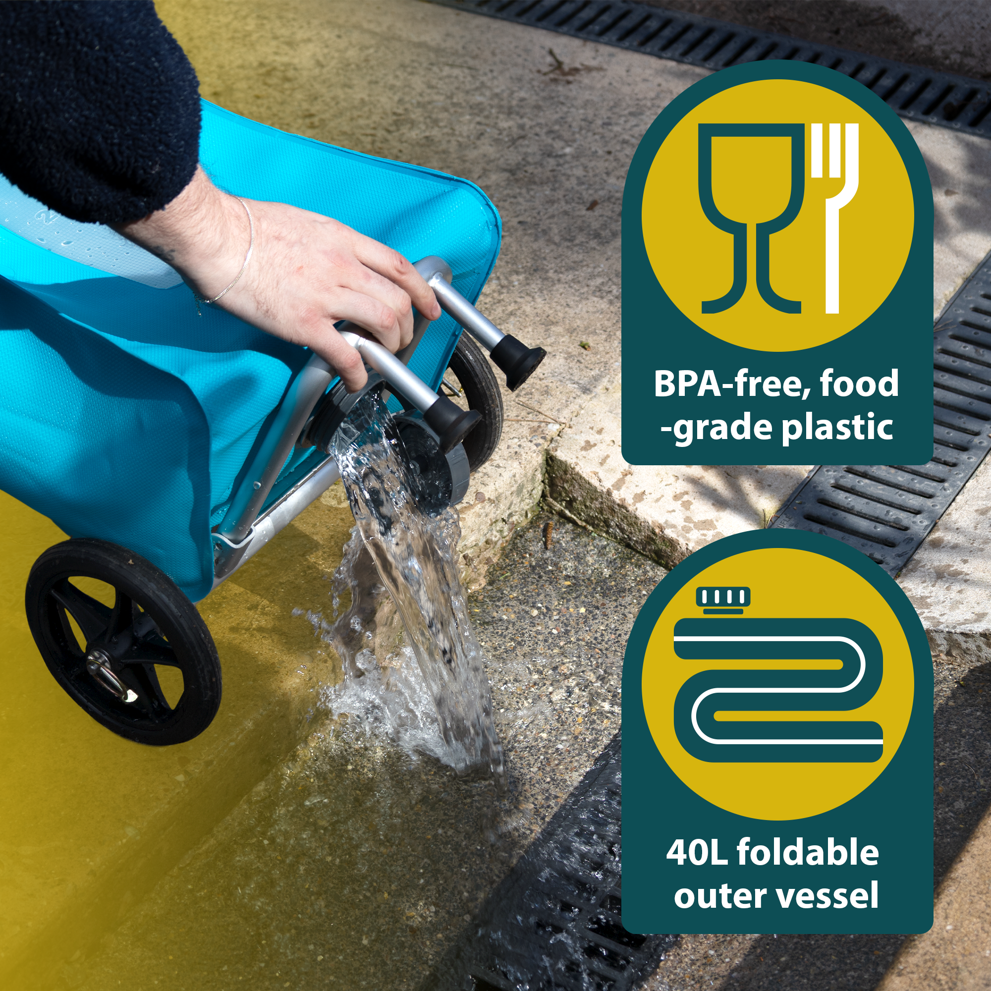 - Easy Transport with Integrated Trolley - Built-in wheels and pull handle allow smooth and controlled movement around campsites, even when fully filled.